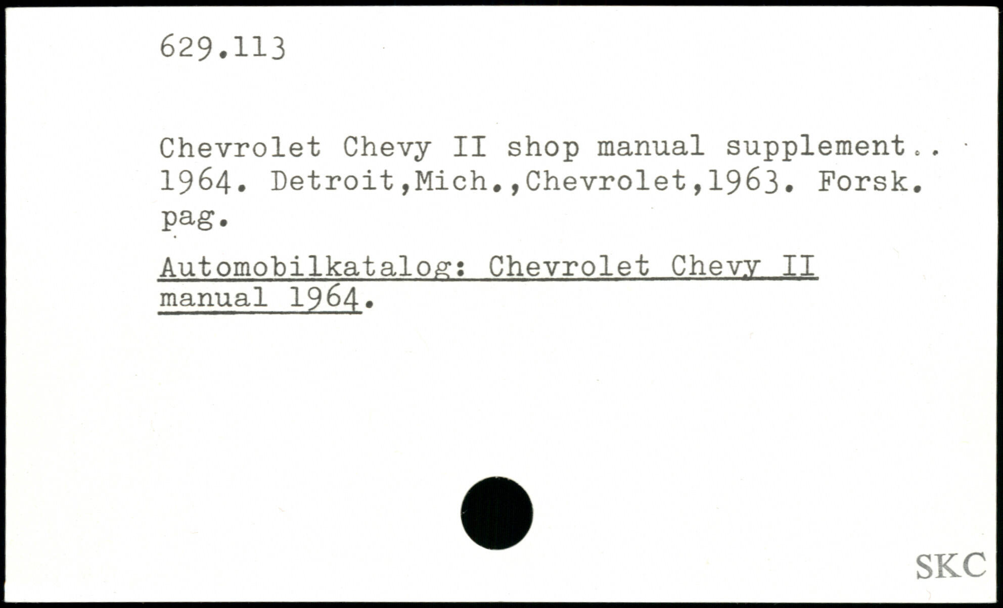 Chevrolet Chevy II shop manual supplement.. 1964.