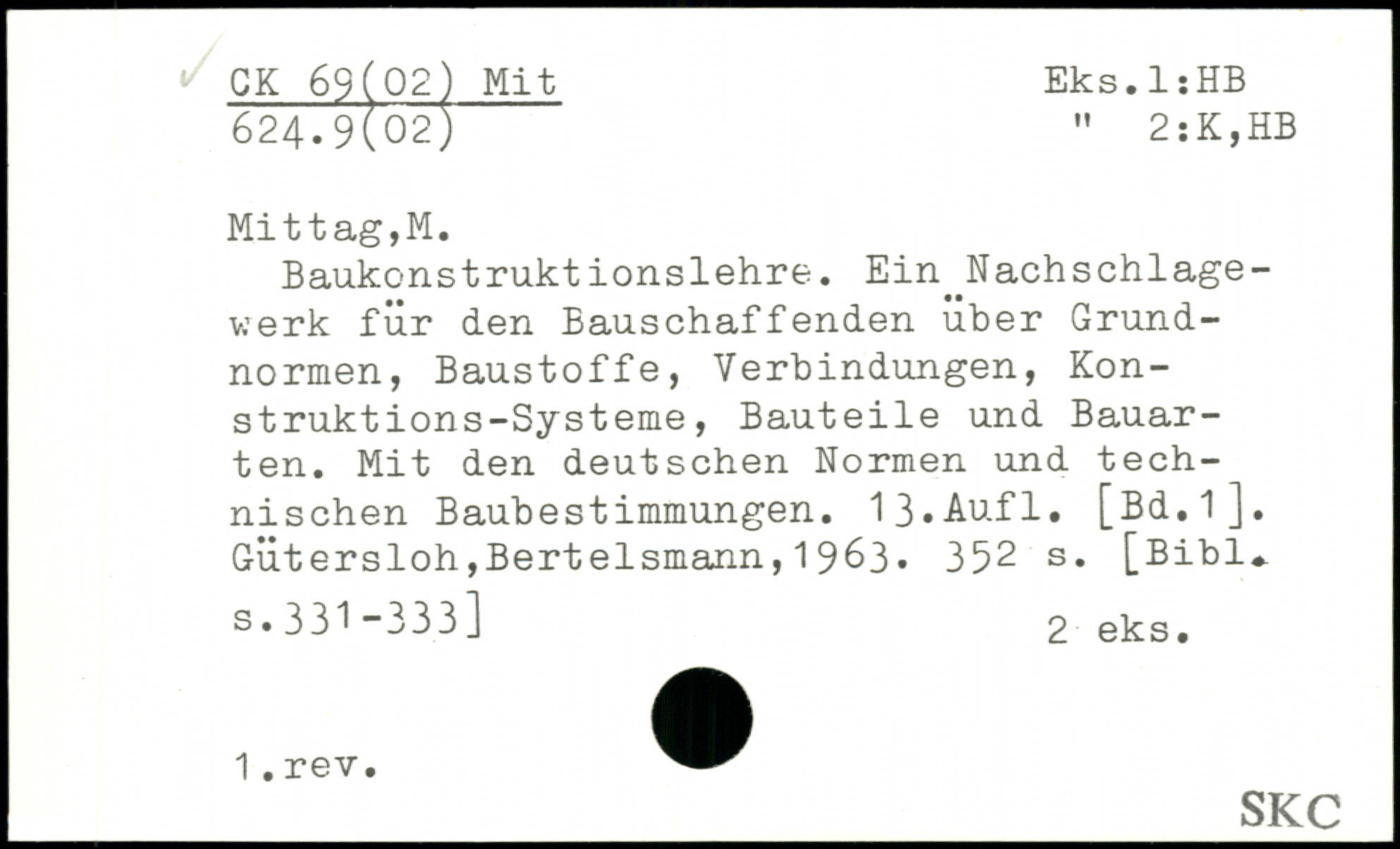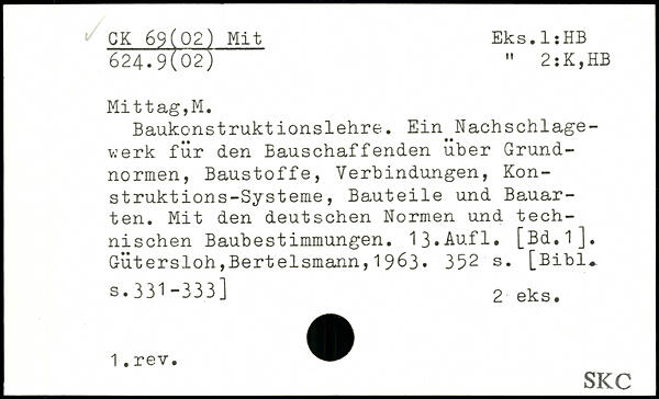 Baukonstruktionslehre. Ein Nachschlagewerk für den Bauschaffenden über Grundnormen, Baustoffe, Verbindungen, Konstruktions-Systeme, Bauteile und Bauarten. Mit den deutschen Normen und technischen Baubest immungen. 13,Aufl. [Bd.l].