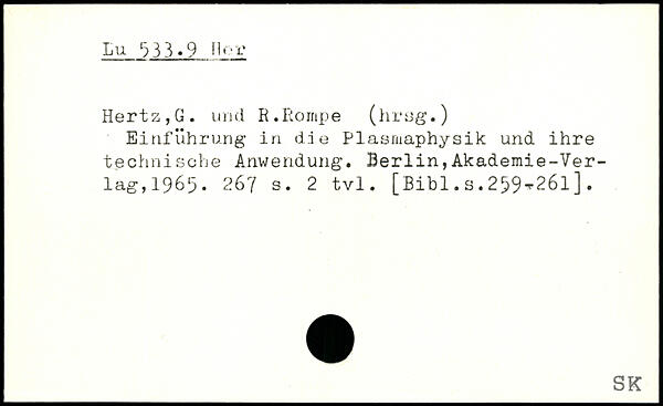 Herta , G. und R .Rontpe (hr sg.) Einführung in die Plasruaphysik und ihre technische Anwendung.