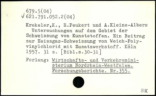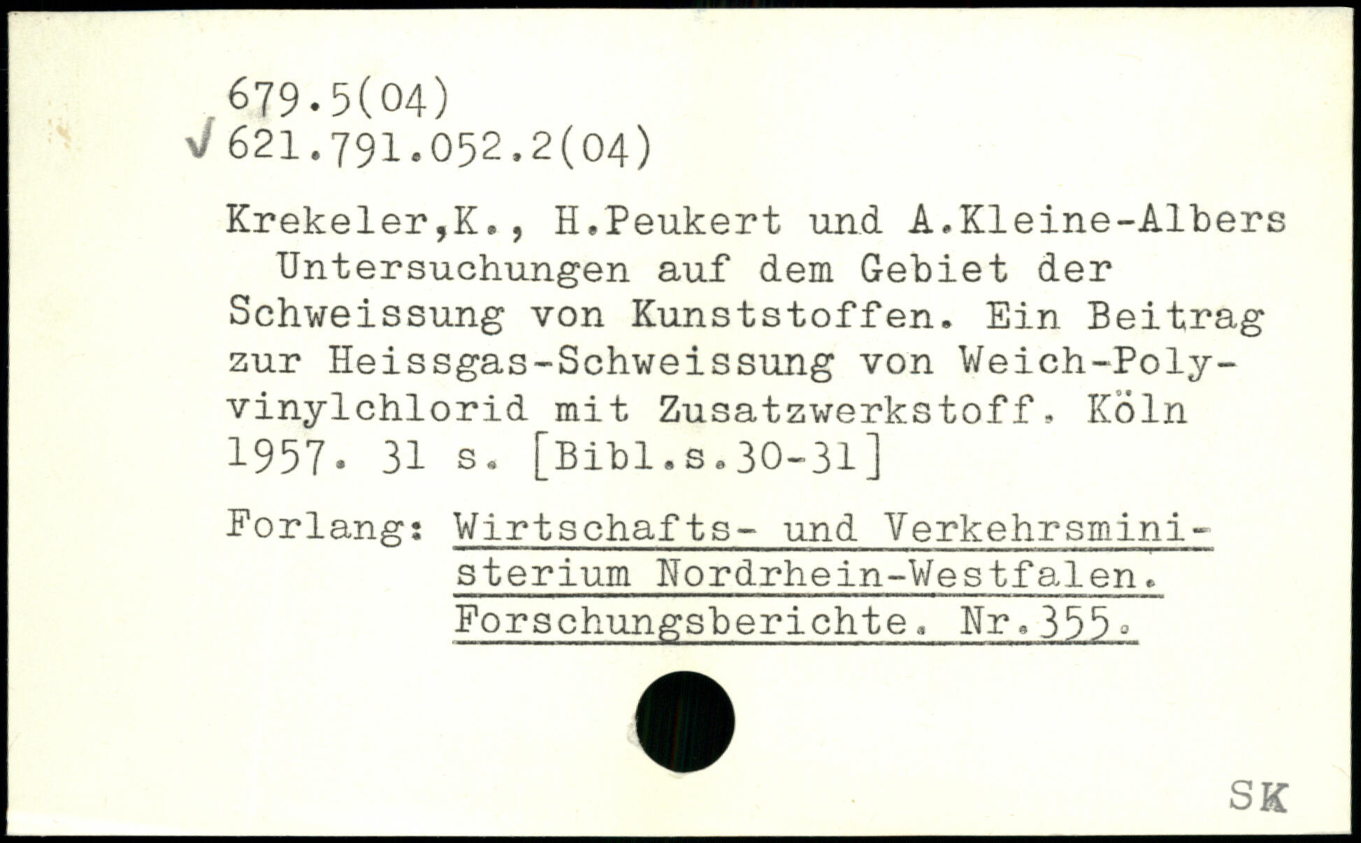 Krekeler,K., H.Peukert und. A.Kleine-Albers Untersuchungen auf dem Gebiet der Schweissung von Kunststoffen. Ein Beitrag zur Heissgas-Schweissung von Weich-Poly-vinylchlorid mit Zusatzwerkstoff