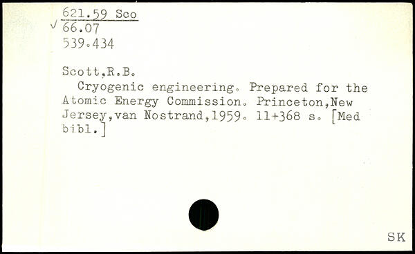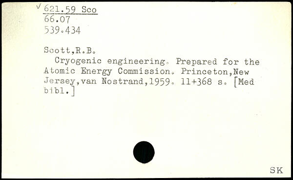Cryogenic engineerings Prepared for the Atomic Energy Commission. Princeton,New Jersey,van Nostrand,1959=