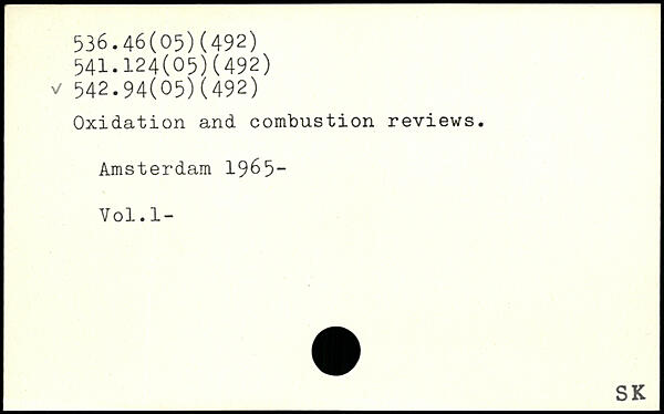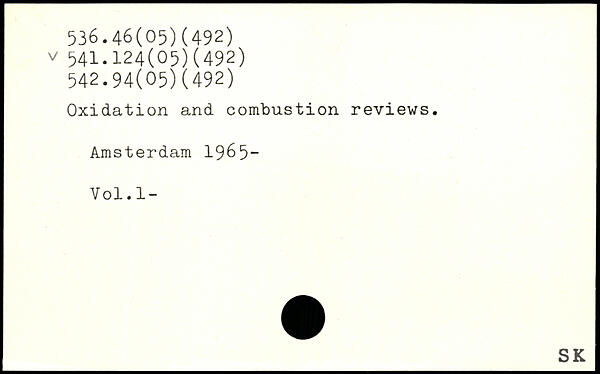 Oxidation and combustion reviews. Amsterdam 1965-Vol.l- _SK^