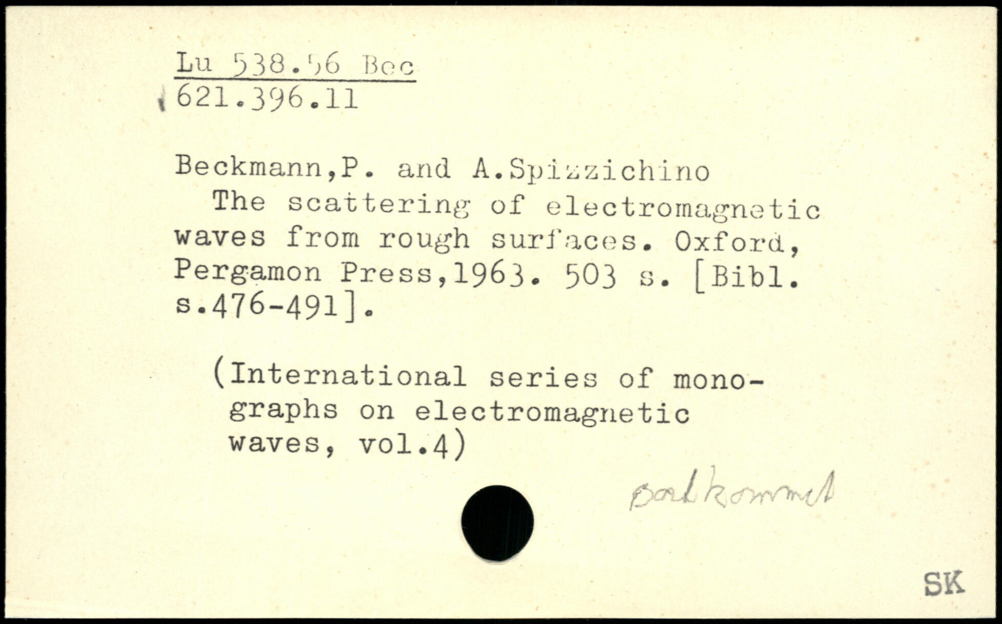Forfatter: P. Beckmann, A. Spizzichino