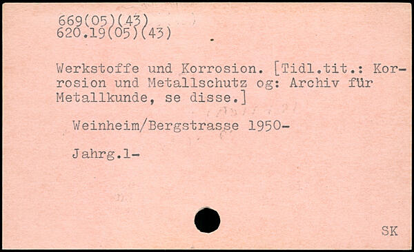 Werkstoffe und Korrosion. [Tidl.tit.: Korrosion und Metallschutz og: Archiv für Metallkunde, se disse.] Weinheim/Bergstrasse 1950- Jahrg.l-