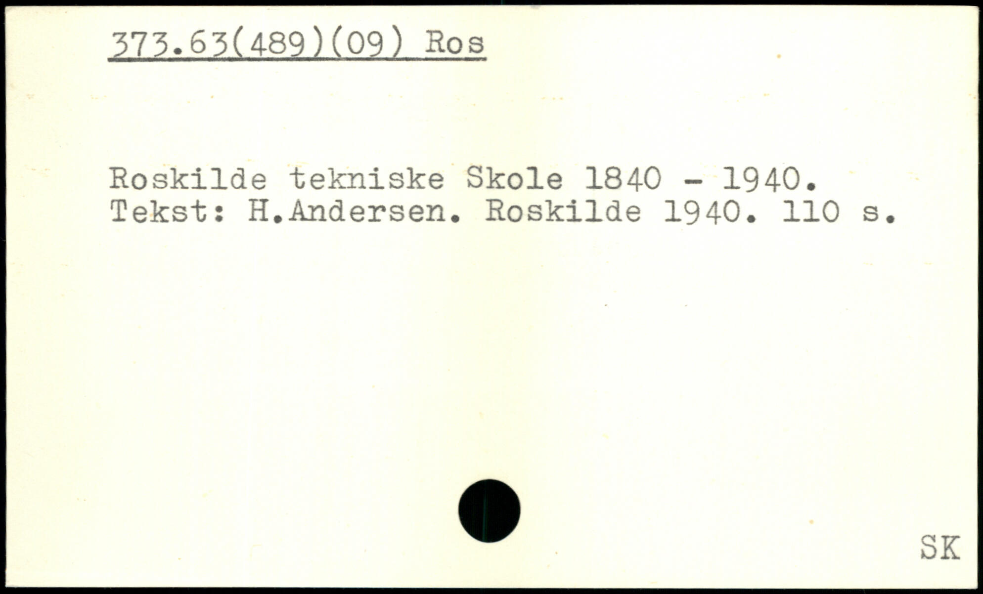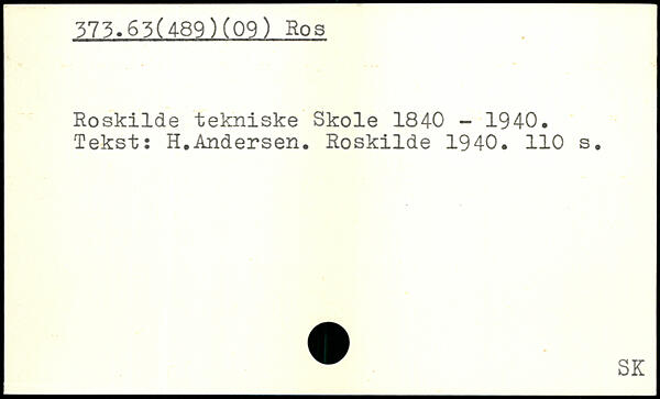 Roskilde tekniske Skole 1840 - 1940. Tekst: H.Andersen. Roskilde 1940.