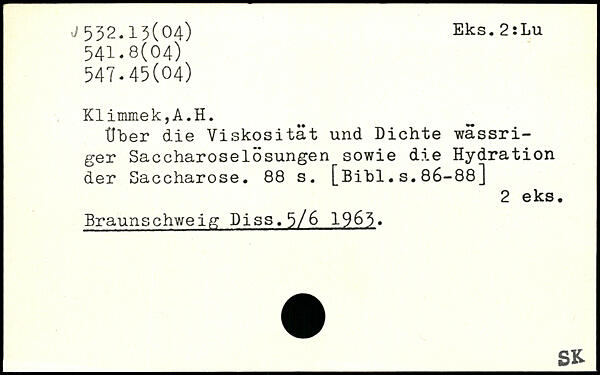 Über die Viskosität und Dichte wässriger Saccharoselösungen sowie die Hydration der Saccharose.