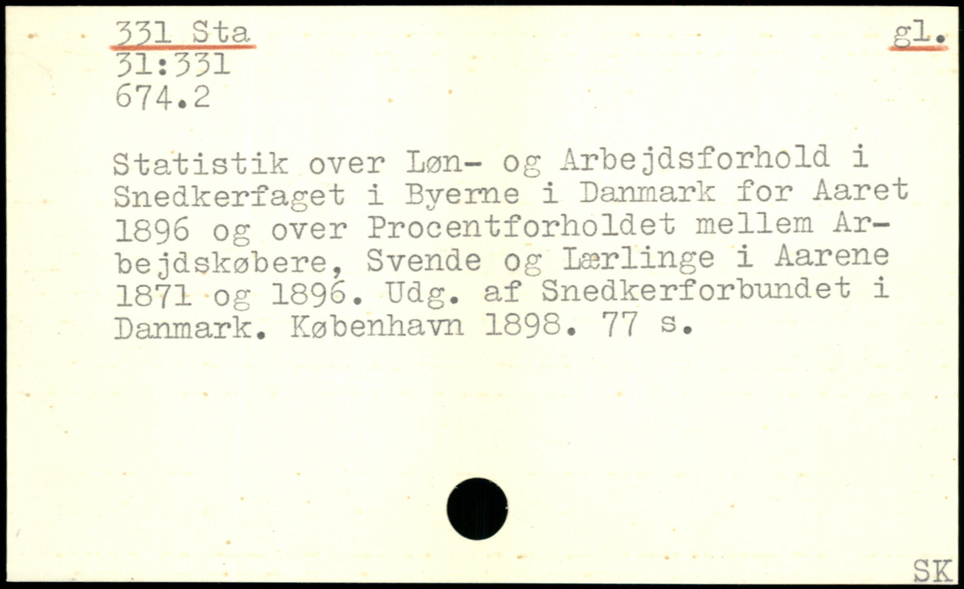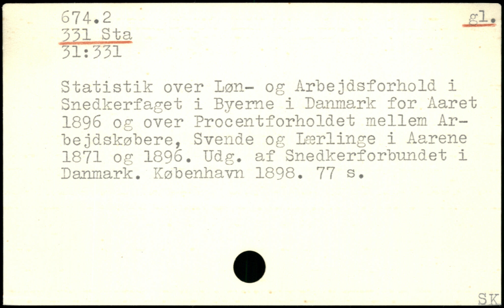 Statistik over Løn- og Arbejdsforhold i Snedkerfaget i Byerne i Danmark for Aaret 1896 og over Procentforholdet mellem Arbe jdskøbere, Svende og Lærlinge i Aarene 1871 og 1896. Udg. af Snedkerforbnndet i Danmark.