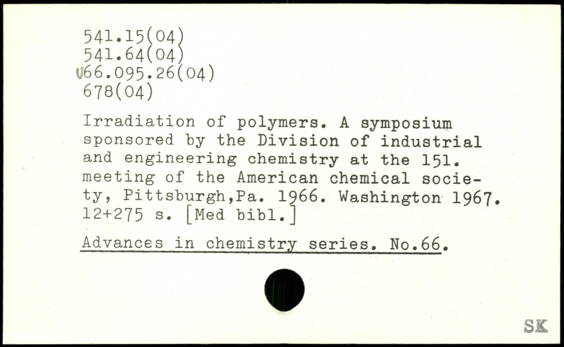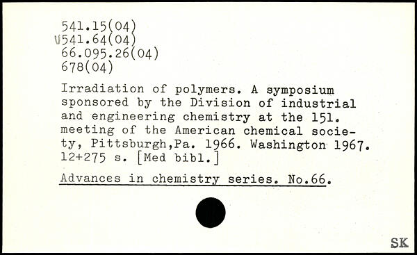 Irradiation of polymers. A symposium sponsored by the Division of industrial and engineering chemistry at the 151. meeting of the American chemical society, Pittsburgh,Pa. 1966.