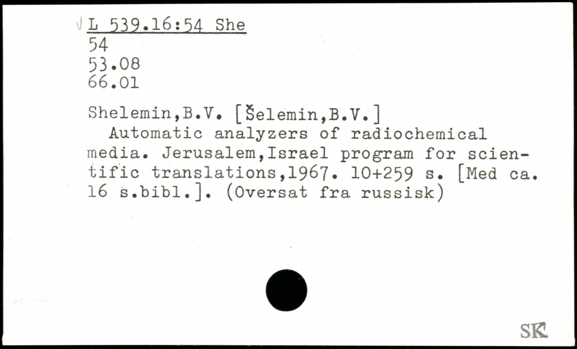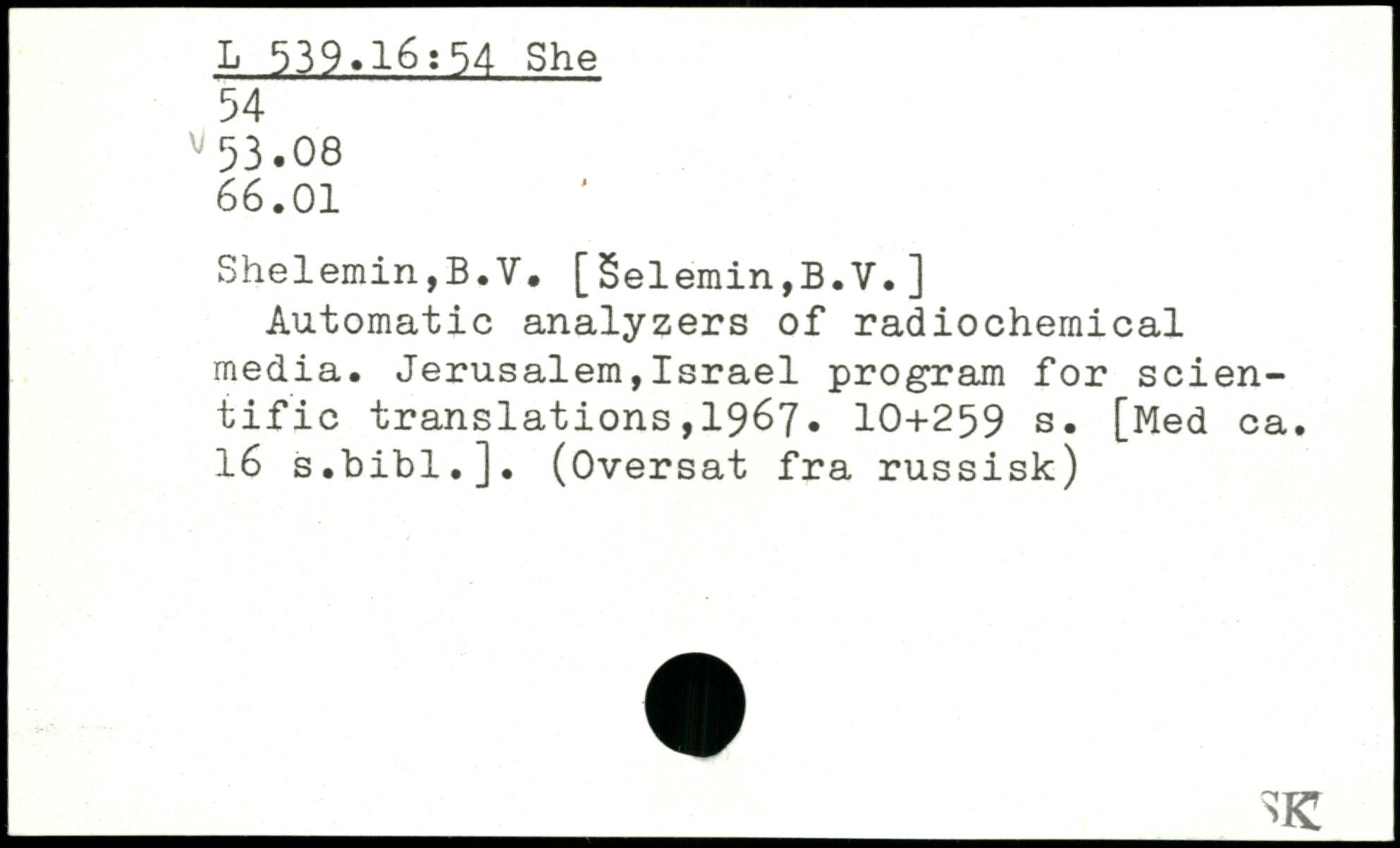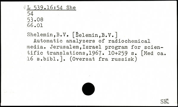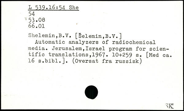 Shelemin,B.V. [Selemin,B.V.] Automatic analyzers of radiochemical media. Jerusalem,Israel program for scientific translations,1967.