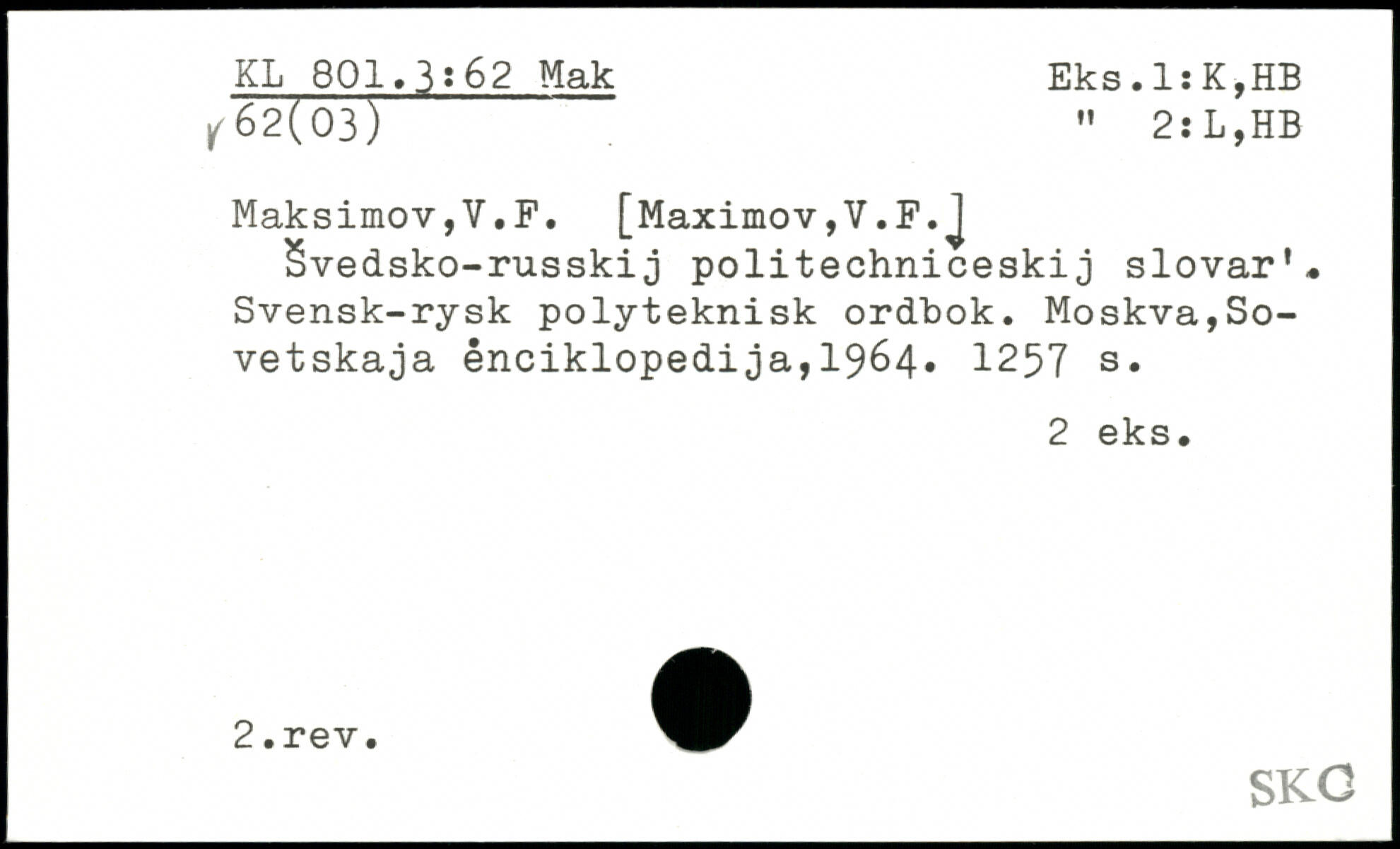 Maksimov,V.F. [Maximov,V.F.J Svedsko-russkij politechniceskij slovar1. Svensk-rysk polyteknisk ordtok.