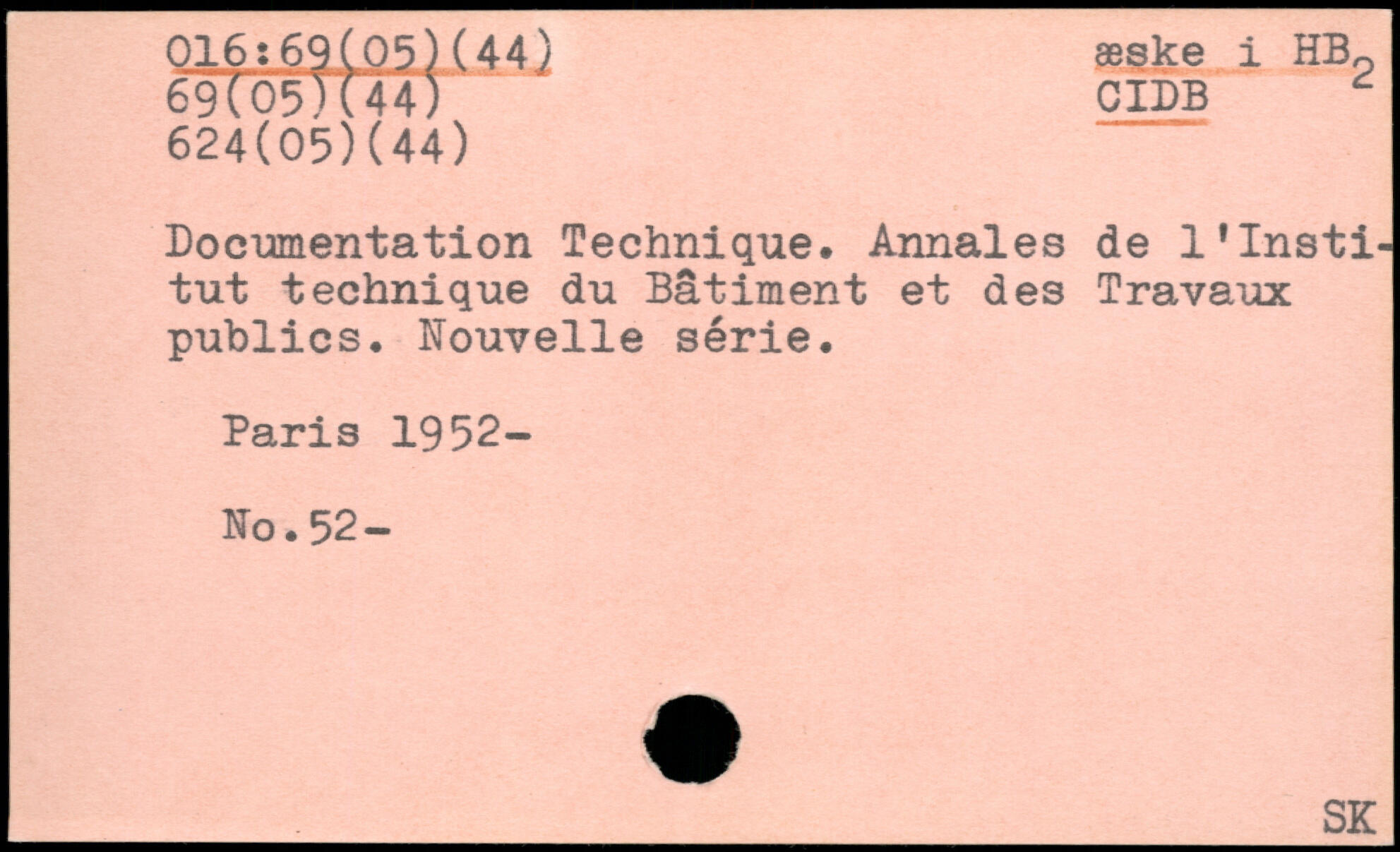 Documentation Technique, Annales de l'Institut technique du Bâtiment et des Travaux publics. Nouvelle série.