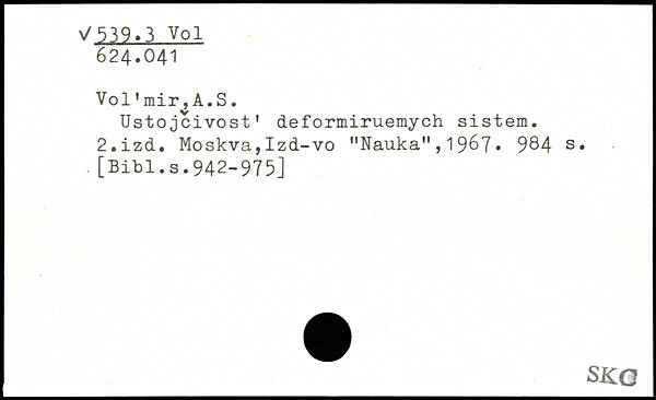 Vol'mir,A.S. Ustojcivost' deformiruemych sistem. 2.izd. Moskva,Izd-vo MNauka",1967.