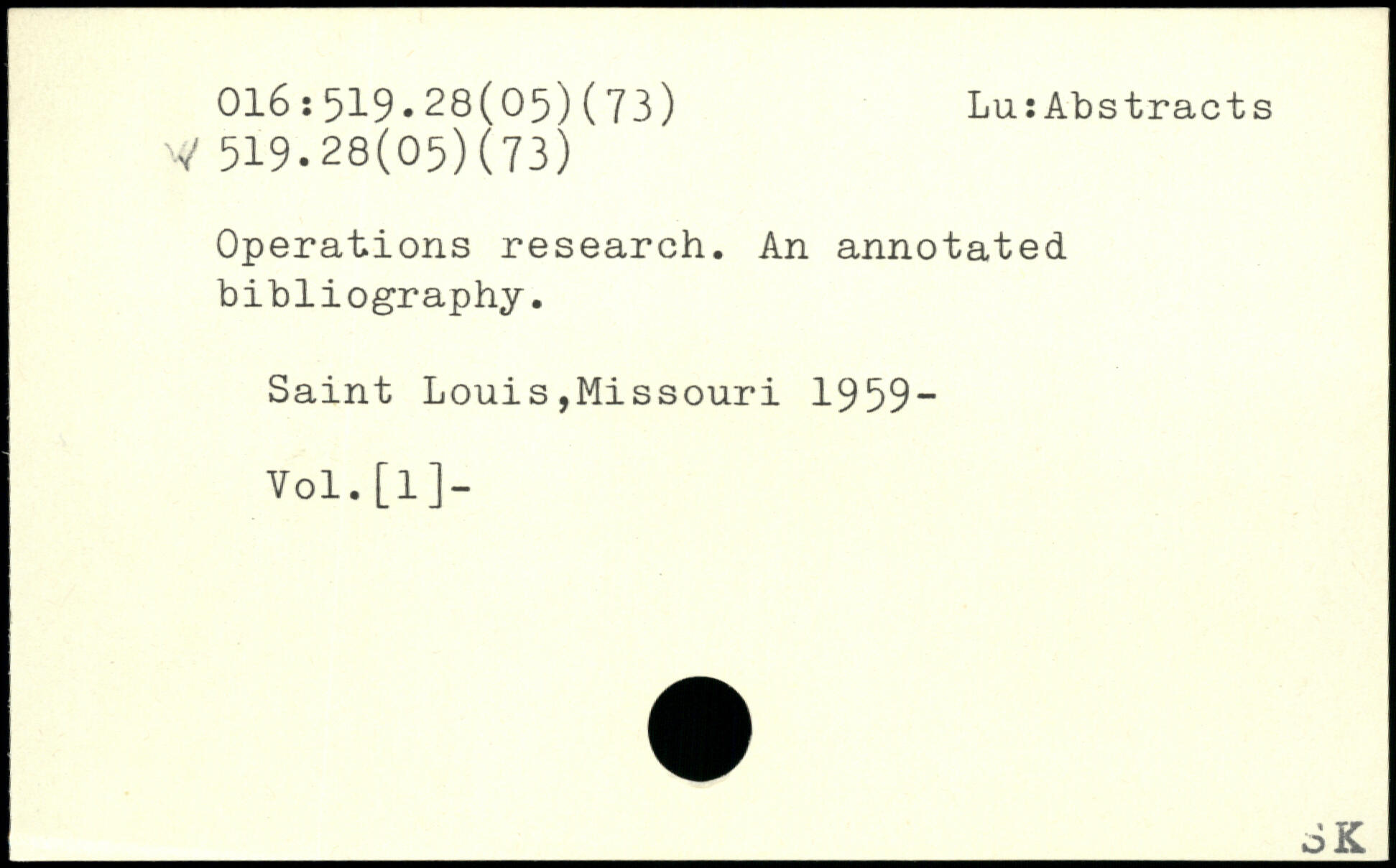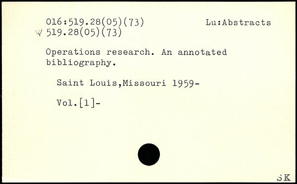 Operations research. An annotated bibliography. Saint Louis,Missouri 1959“ Vol.[1]- _oK