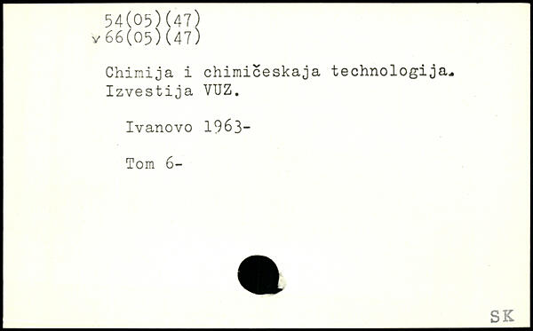 Chinija i chimiceskaja technology, ja-Izvestija VUZ. Ivanovo 1963- Tom 6-