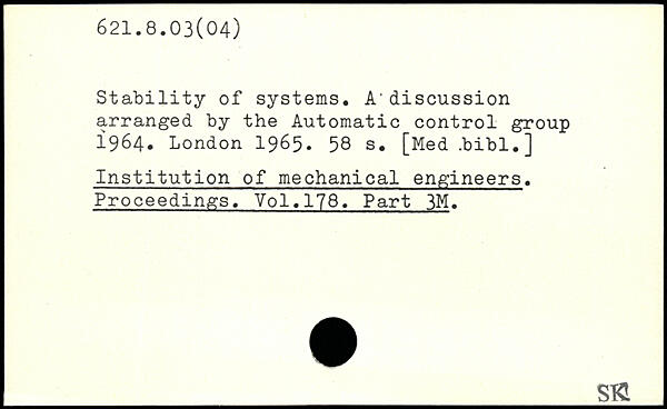 Stability of systems. A'discussion arranged by the Automatic control group 1964.