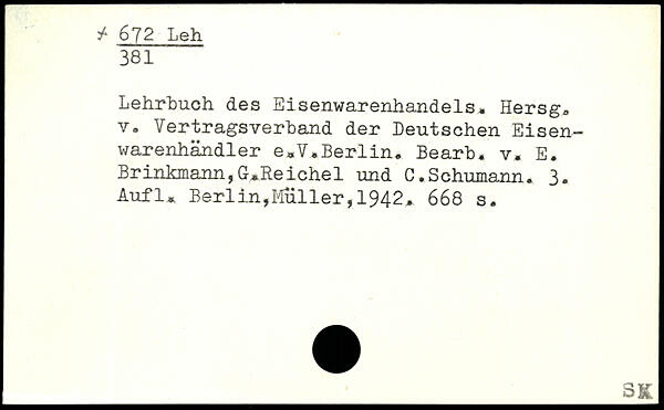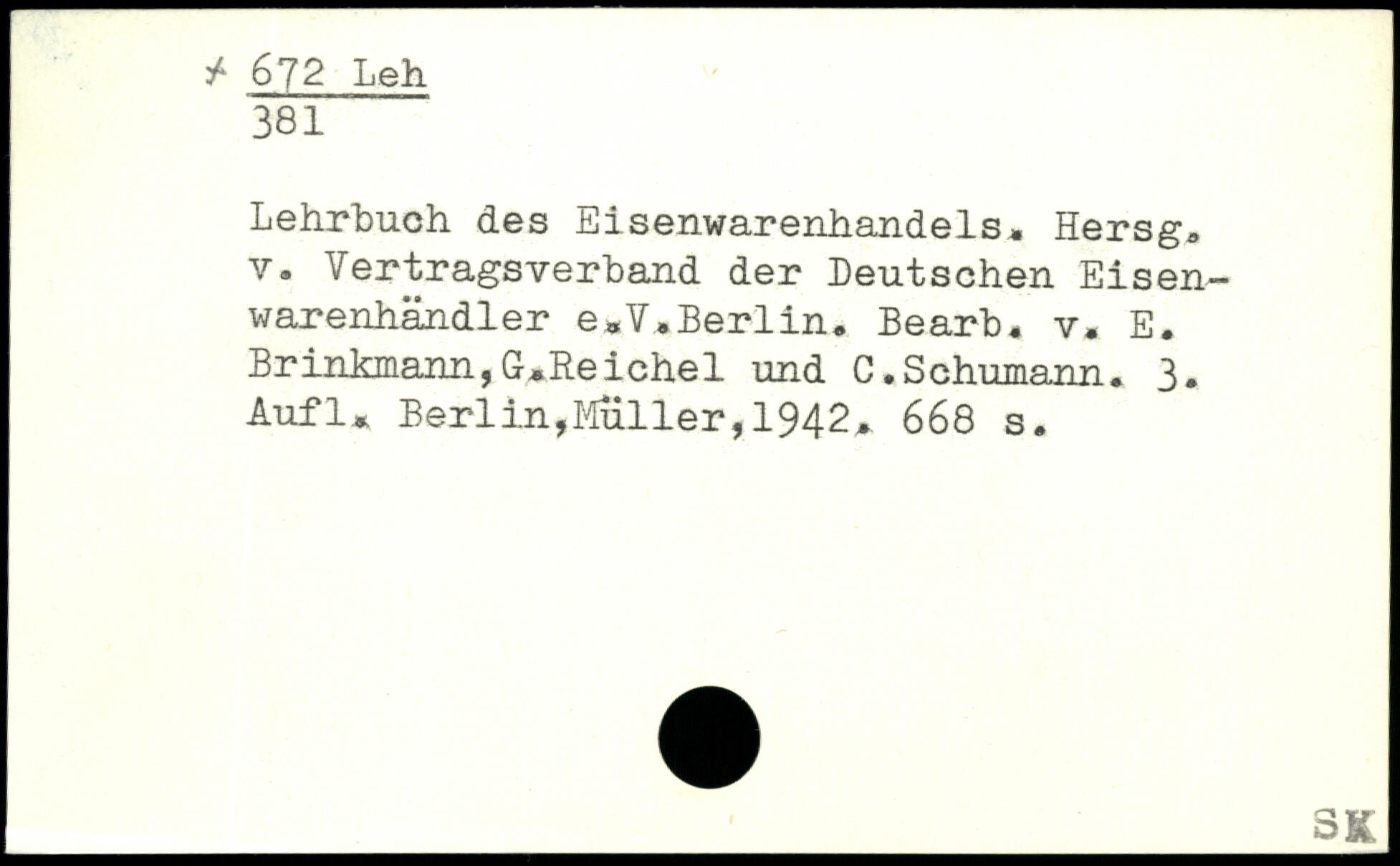 Lehrbuch des Eisenwarenhandels. Hersg. v. Vertragsverband der Deutschen Eisenwarenhändler e,V,Berlin. Bearb. v. E. Brinkmann, Gleiche 1 und C.Schumann. 3. Auf 1.