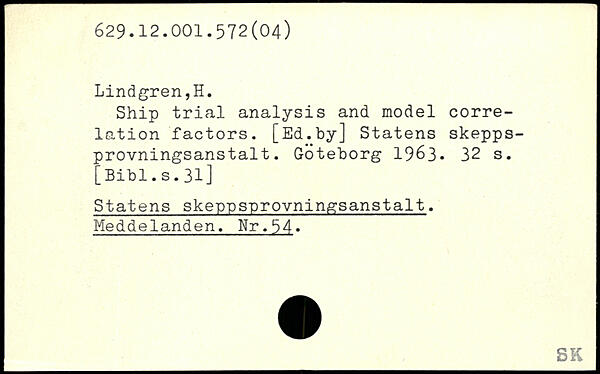 Ship trial analysis and model corre-lation factors. [Ed.by] Statens skepps-provningsanstalt. Goteborg 1963.