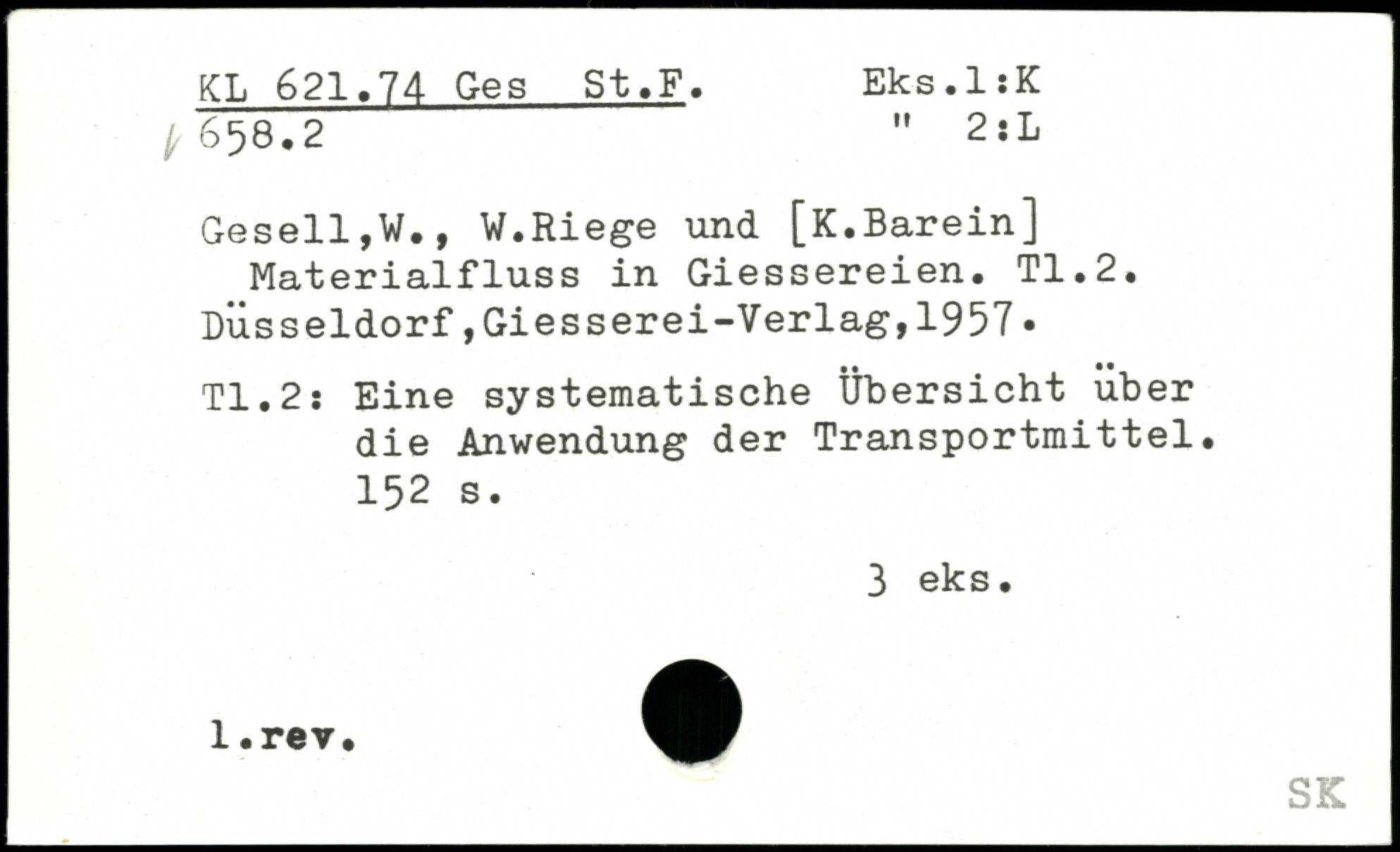 Gesell,W., W.Riege und [K.Barein] Materialfluss in Giessereien. TI.2.