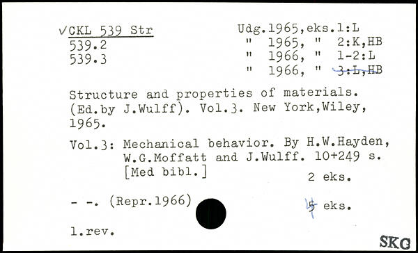" 1966, " Structure and properties of materials. (Ed.by J.Wulff).