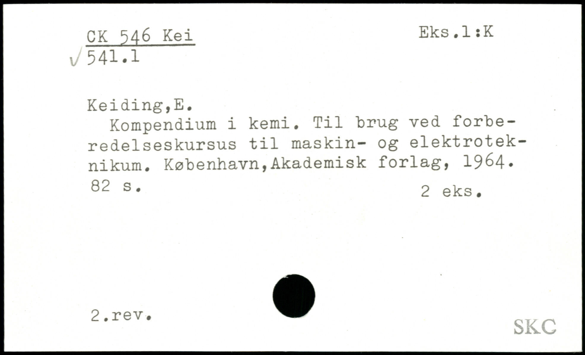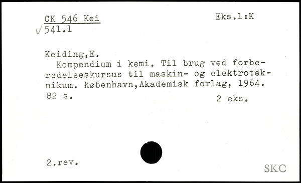 Kompendium i kemi. Til brug ved forberedelseskursus til maskin- og elektrotek-nikum. København,Akademisk forlag, 19^4.