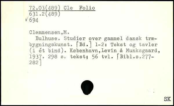 C lemmens en, M, Bulhuse, Studier over gammel dansk træ-bygningskunst , fBd.] 1-21 Tekst og tavler (i ét bind)