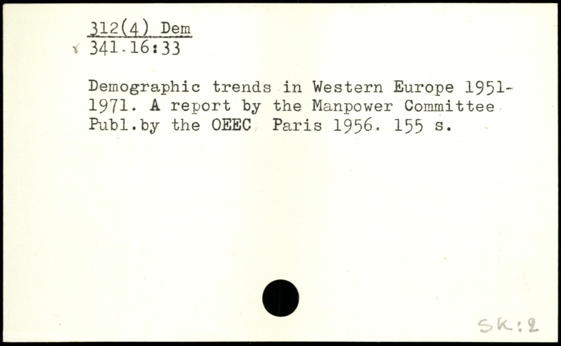Demographic trends in Western Europe 1951-1971. A report by the Manpower Committee