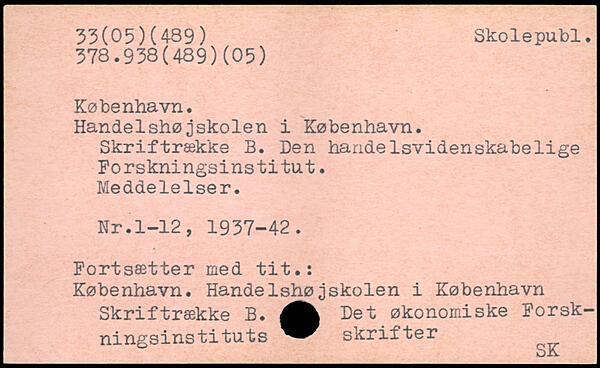 Handelshøjskolen i København. Skriftrække B. Den haride Isvidenskabelige Forskningsinstitut. Meddelelser. Nr.1-12, 1937-42. Fortsætter med tit.: København. Handelshøjskolen i København Skriftrække B. Det økonomiske Forsk- ningsinstituts “ skrifter