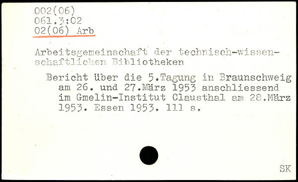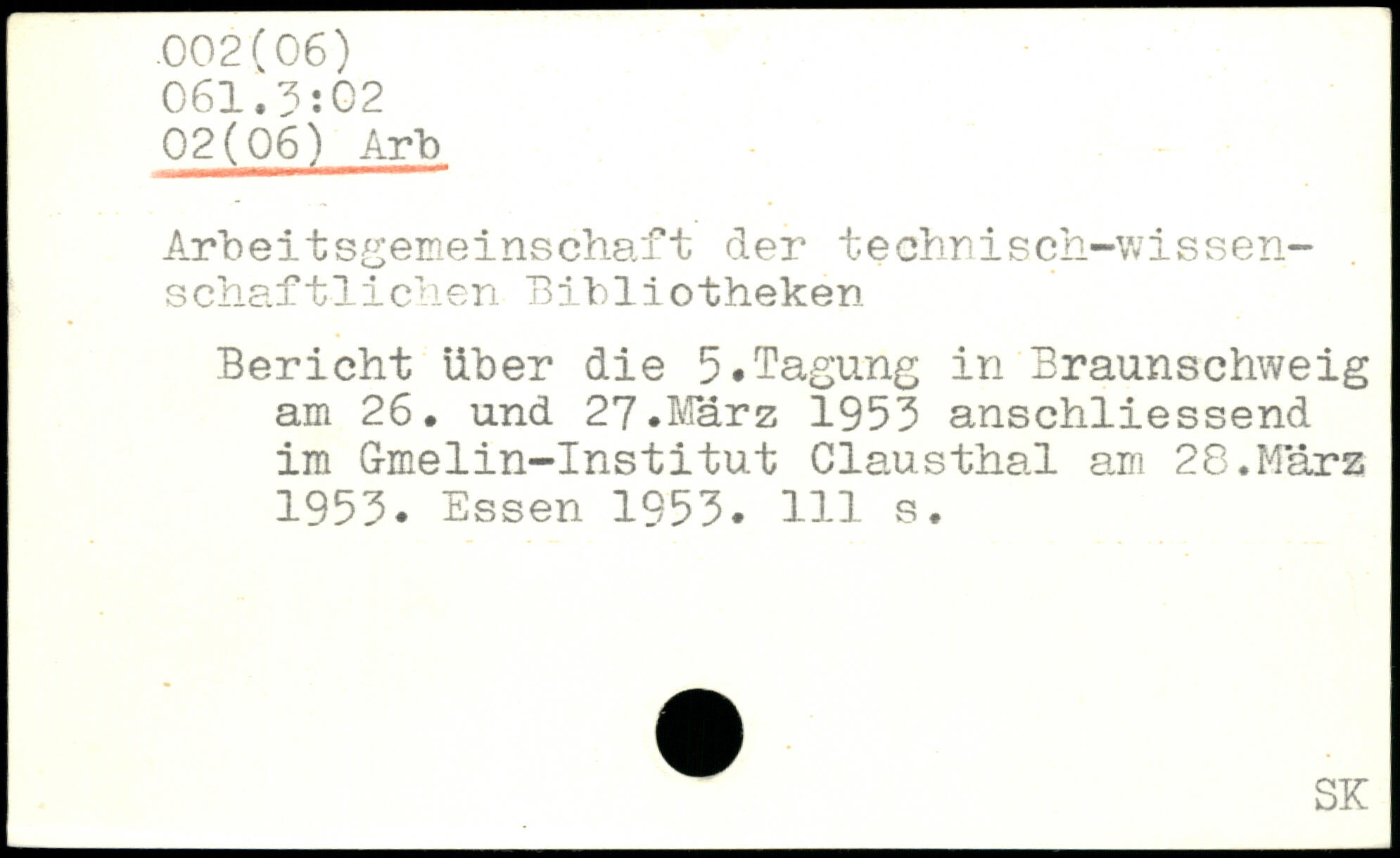 Arb eit sgemeins chaf t der t e ehr. i sch-wi s sen-schaftlichen Bibliotheken Bericht über die 5.Tagung in Braunschweig am 26. und 27.März 1953 anschliessend im G-melin-Institut Clausthal am 28.März 1953.