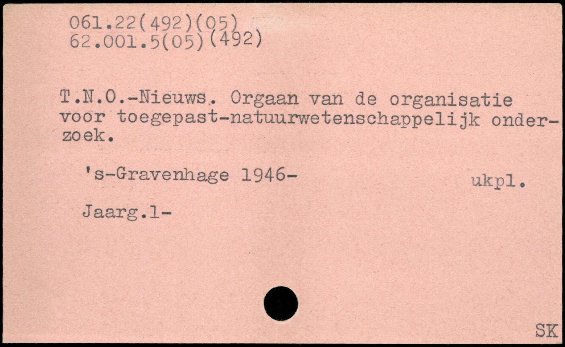 T.H.O.-Nieuws. Orgaan van de organisatie voor toegepast-natuurwetensehappelijk onder-zoek. ’ s-Grave image 1946- ukpl. Jaarg.l-