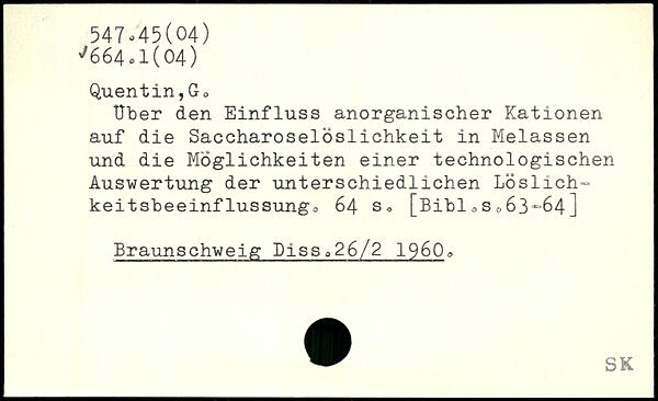 Über den Einfluss anorganischer Kationen auf die Saccharoselöslichkeit in Melassen und die Möglichkeiten einer technologischen Auswertung der unterschiedlichen Löslich-keitsbeeinflussungo