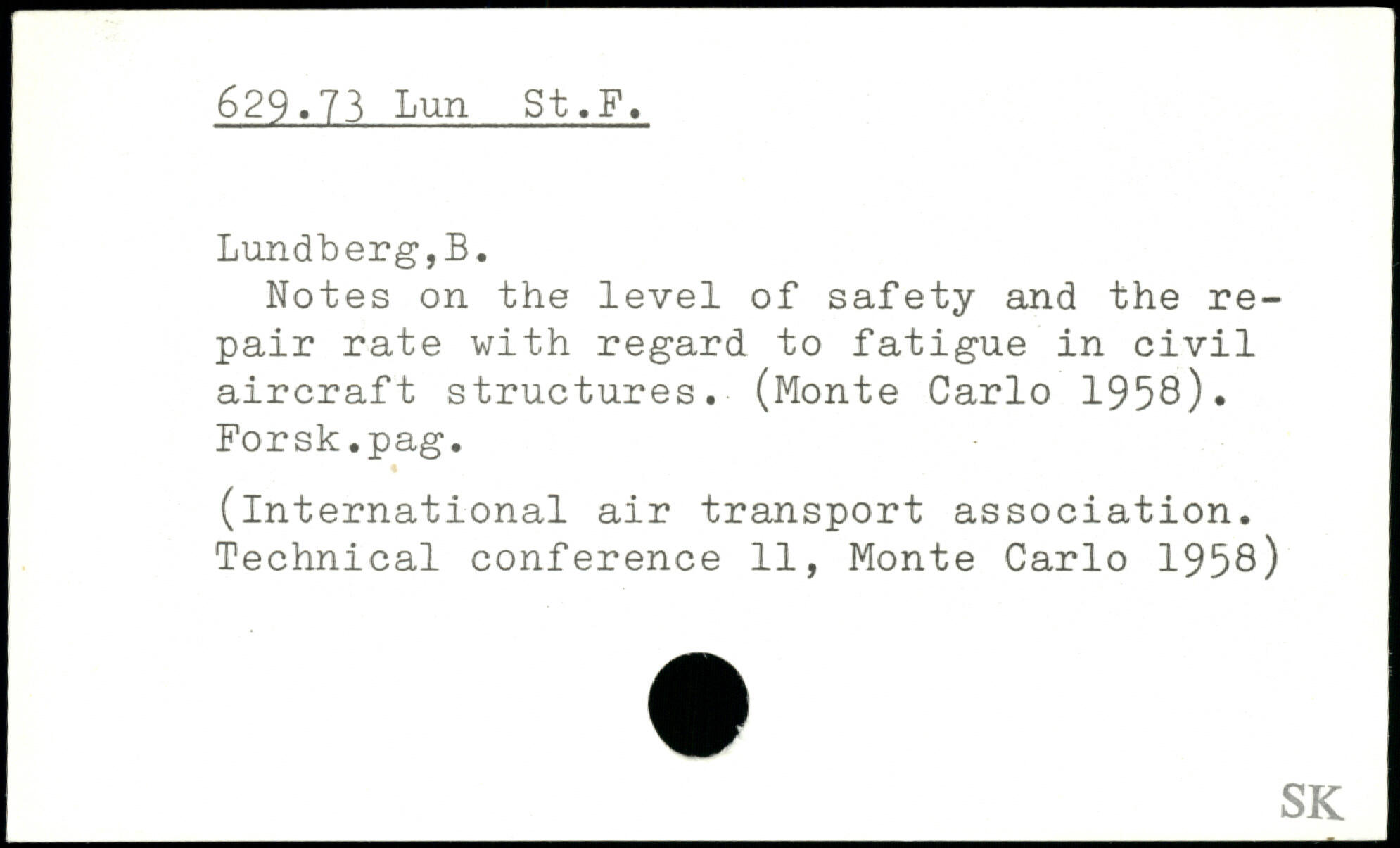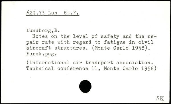 Notes on the level of safety and the repair rate with regard to fatigue in civil aircraft structures. (Monte Carlo 1958). Forsk.pag. (International air transport association. Technical conference 11, Monte Carlo 1958)