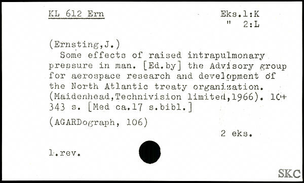 Some effects of raised intrapulmonary pressure in man. [Ed.by] the Advisory group for aerospace research and development of the North Atlantic treaty organisation, (