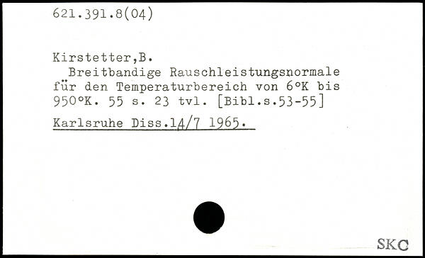 Breitbandige Rauschleistungsnormale für den Temperaturbereich von 6.K bis 950.K.