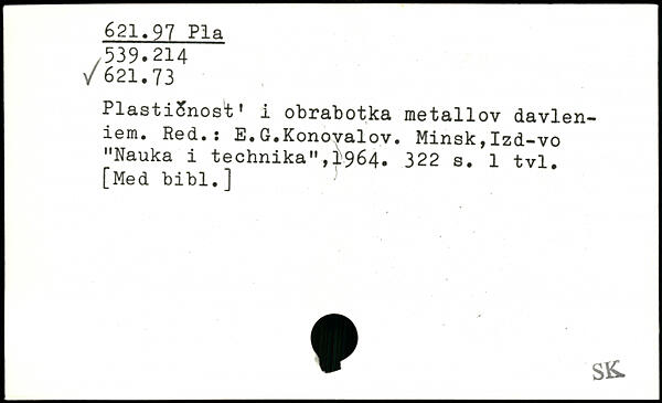 PlastiSnos't ' i obrabotka metallov davlen-iem. Red.. E.G.Konoyalov. MinskfIzd—vo "Nauka i technika",1964.