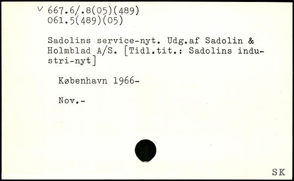 Sadolins service-nyt. Udg.af Sadolin & Holmblad A/S. [Tidl.tit.: Sadolins indu-stri-nyt]