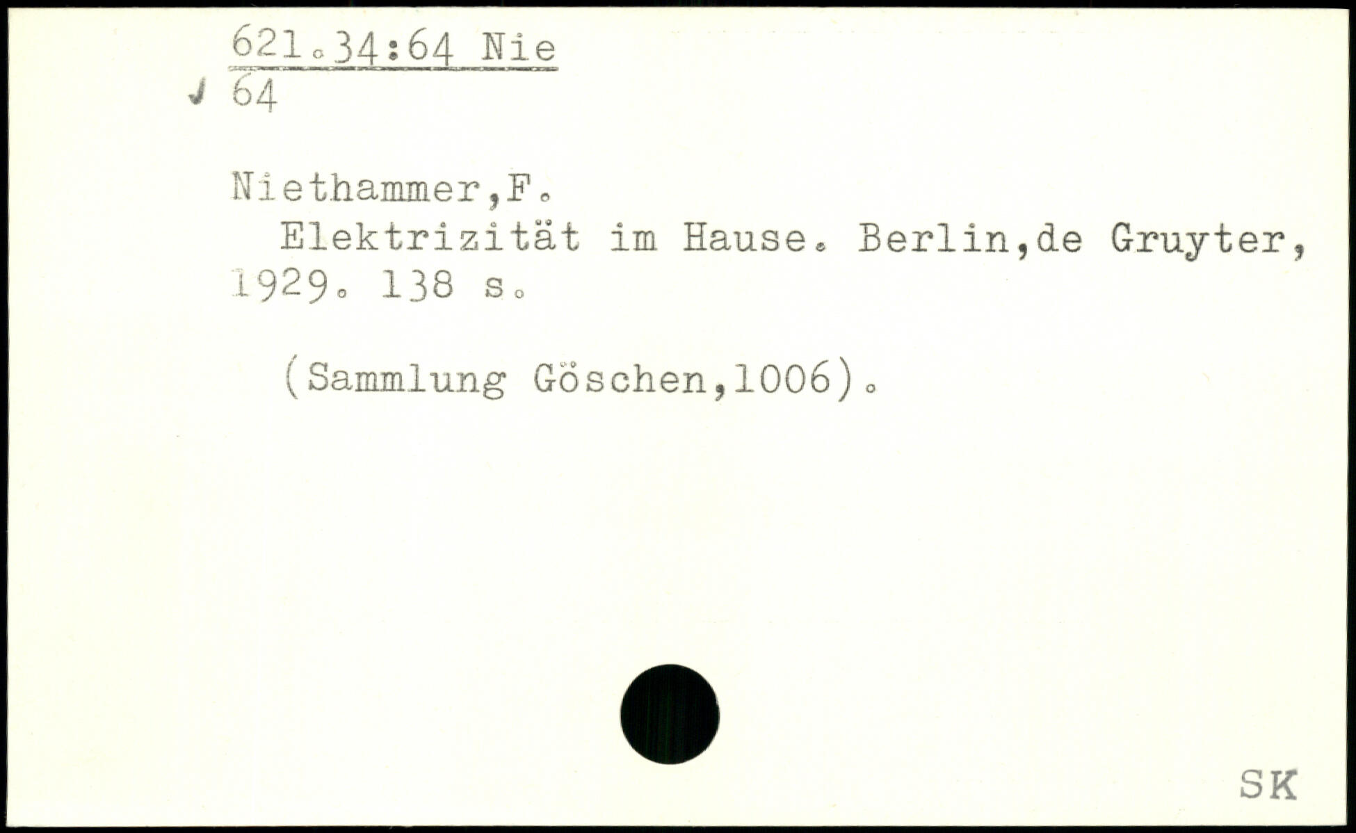 Elektrizität im Hause. Berlin,de Gruyter, 1929