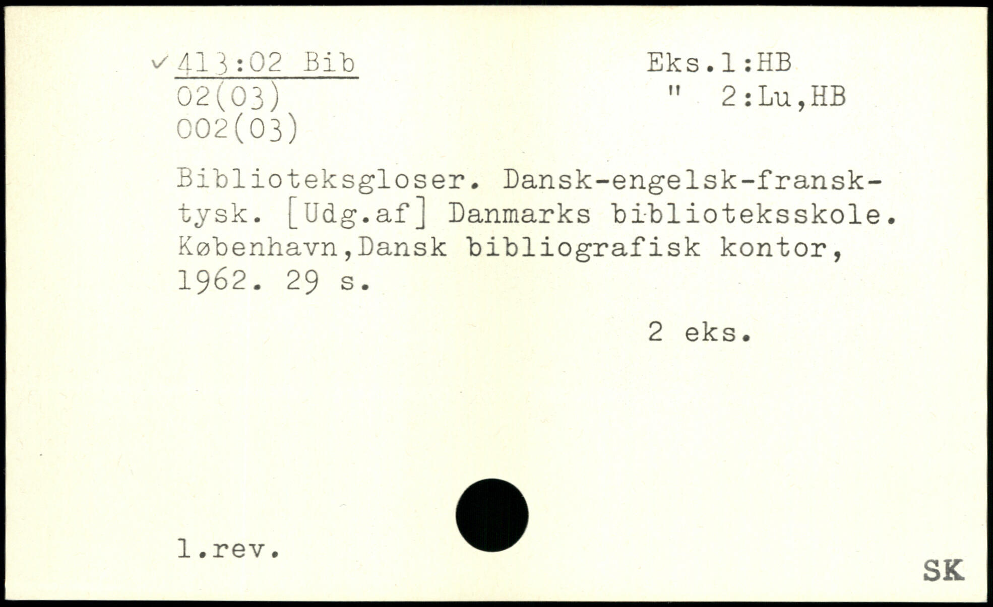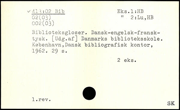 Biblioteksgloser. Dansk-enge1sk-fransk-tysk. [Udg.afj Danmarks biblioteksskole.