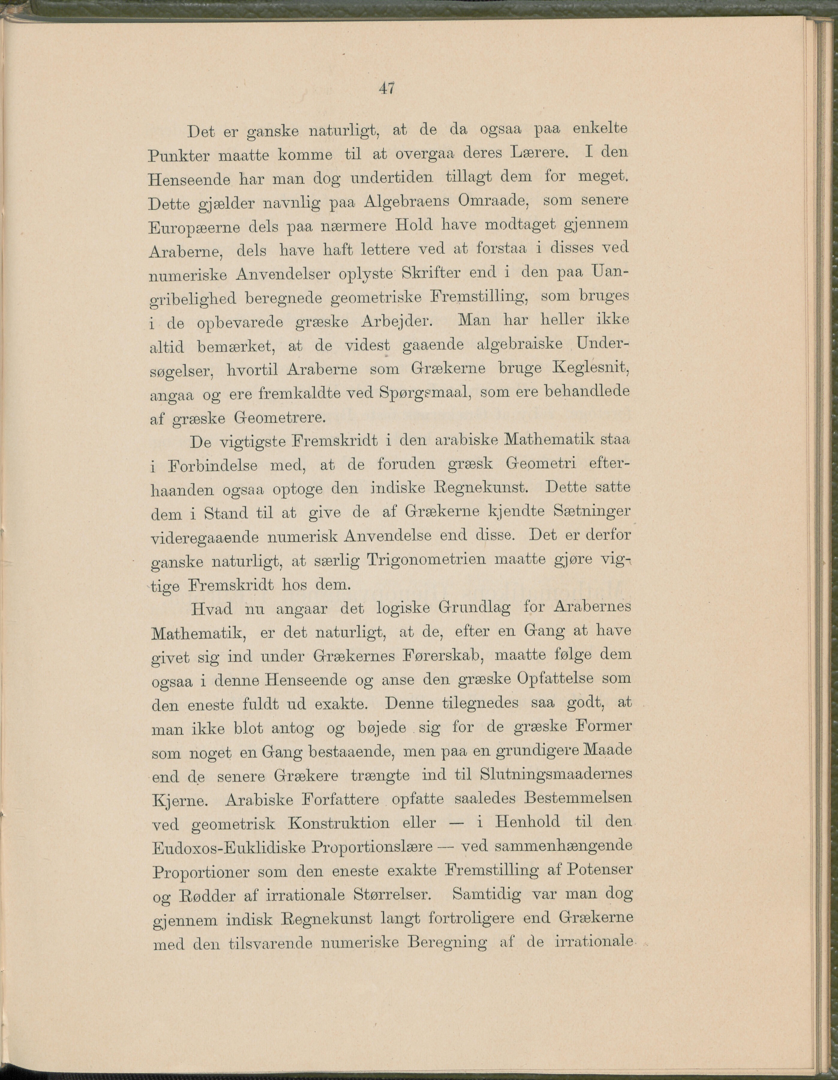 Dette gjælder navnlig paa Algebraens Omraade, som senere