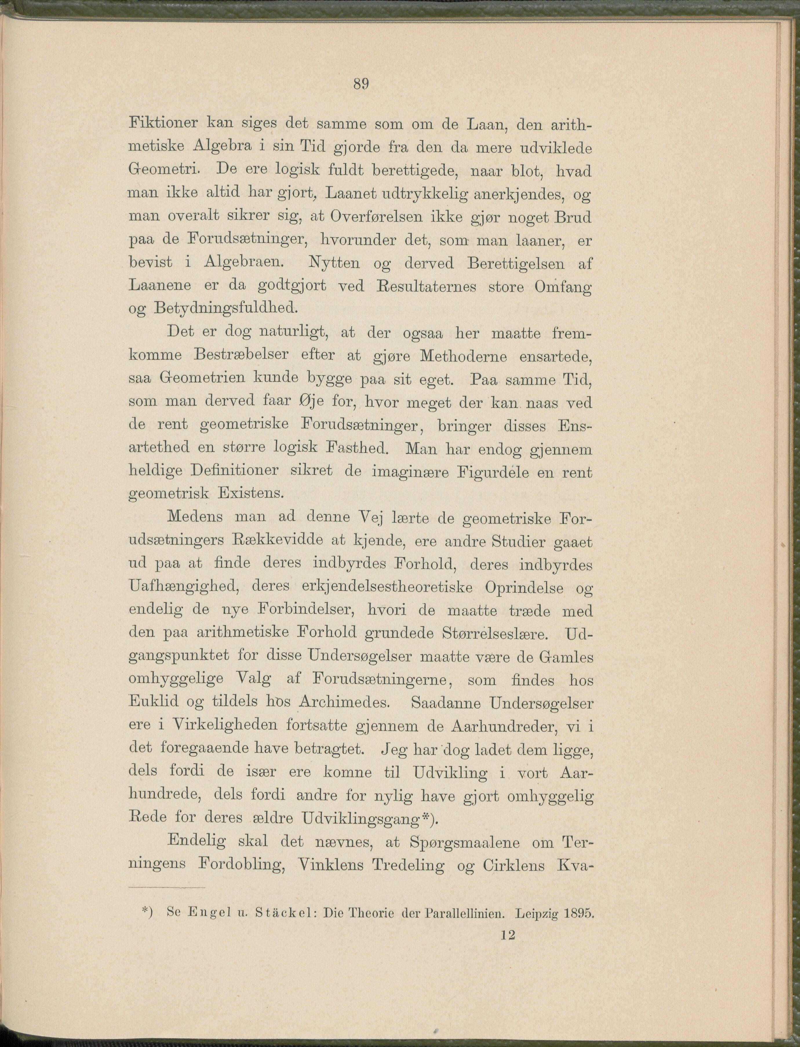 *) Se Engel u. Stäckel: Die Theorie der Parallellimen. Leipzig 1895.