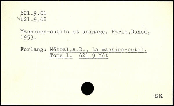 Machines-outils et usinage, Paris?Dunod, 1953,. Porlangî Métrai 4^, , La machine-outilc Tome !, 621o9 Met