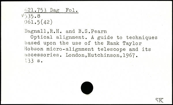 Optical alignment. A guide to techniques based upon the use of the Rank Taylor Hobson micro-alignment telescope and its accessories.