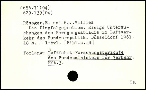 Das Plugfolgeproblem. Einige Untersuchungen des Bewegungsablaufs im Luftverkehr des Bundesrepublik. Düsseldorf 1961.