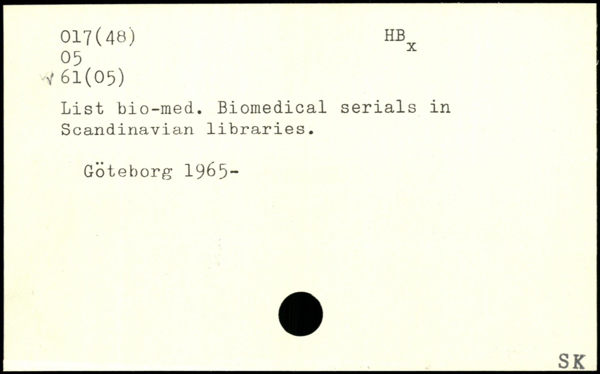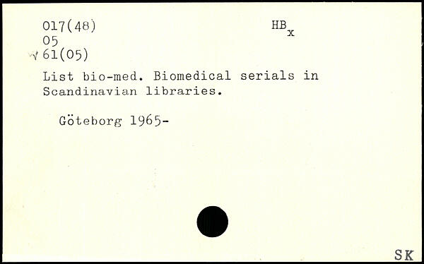 List bio-med. Biomedical serials in Scandinavian libraries. Goteborg 19&5“