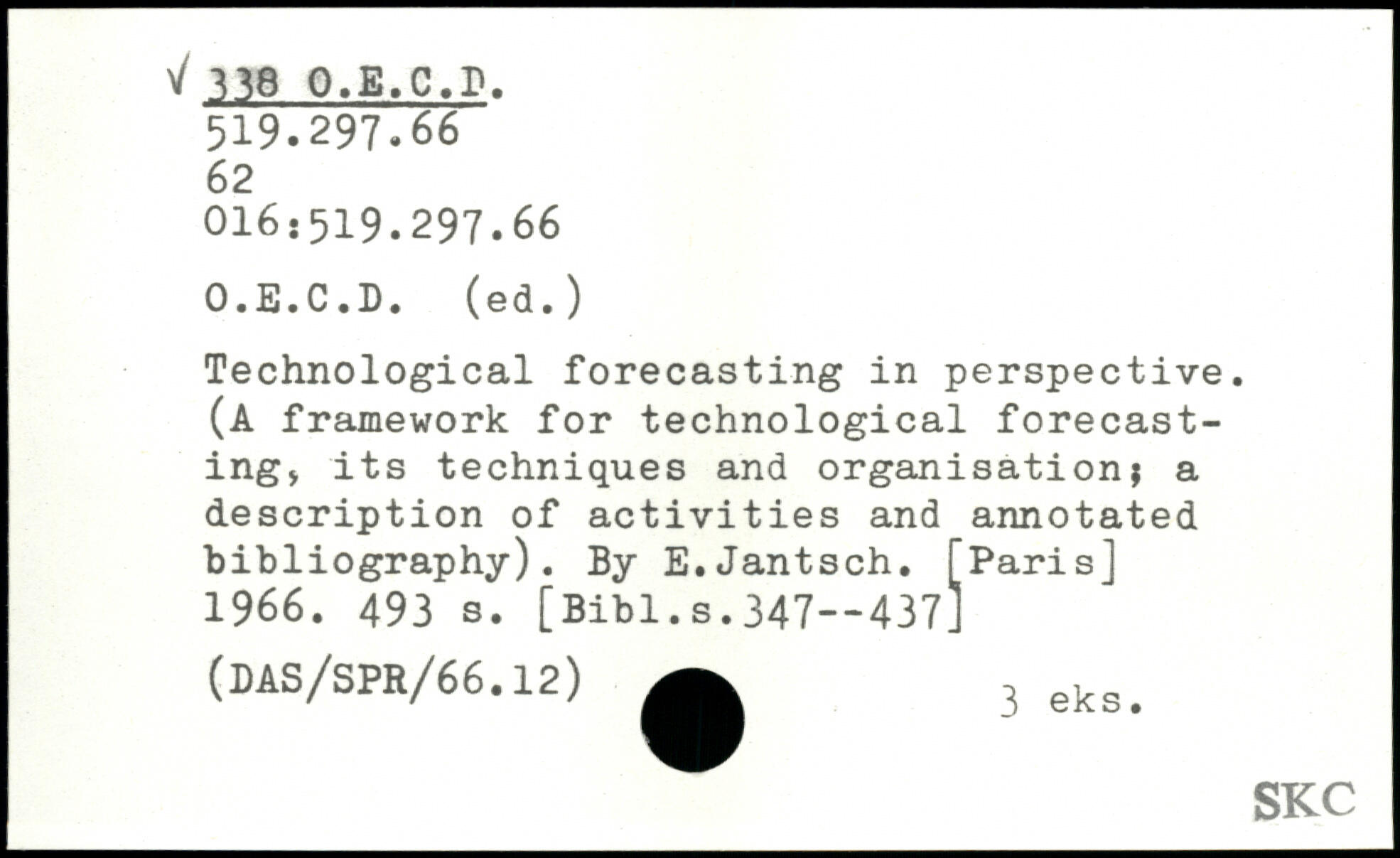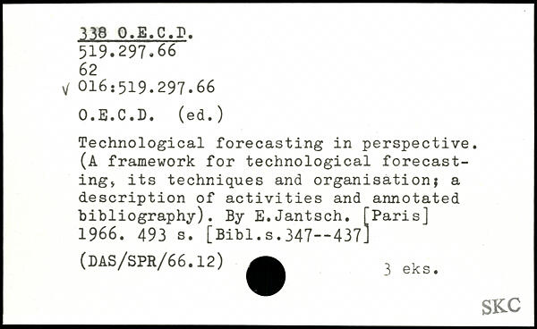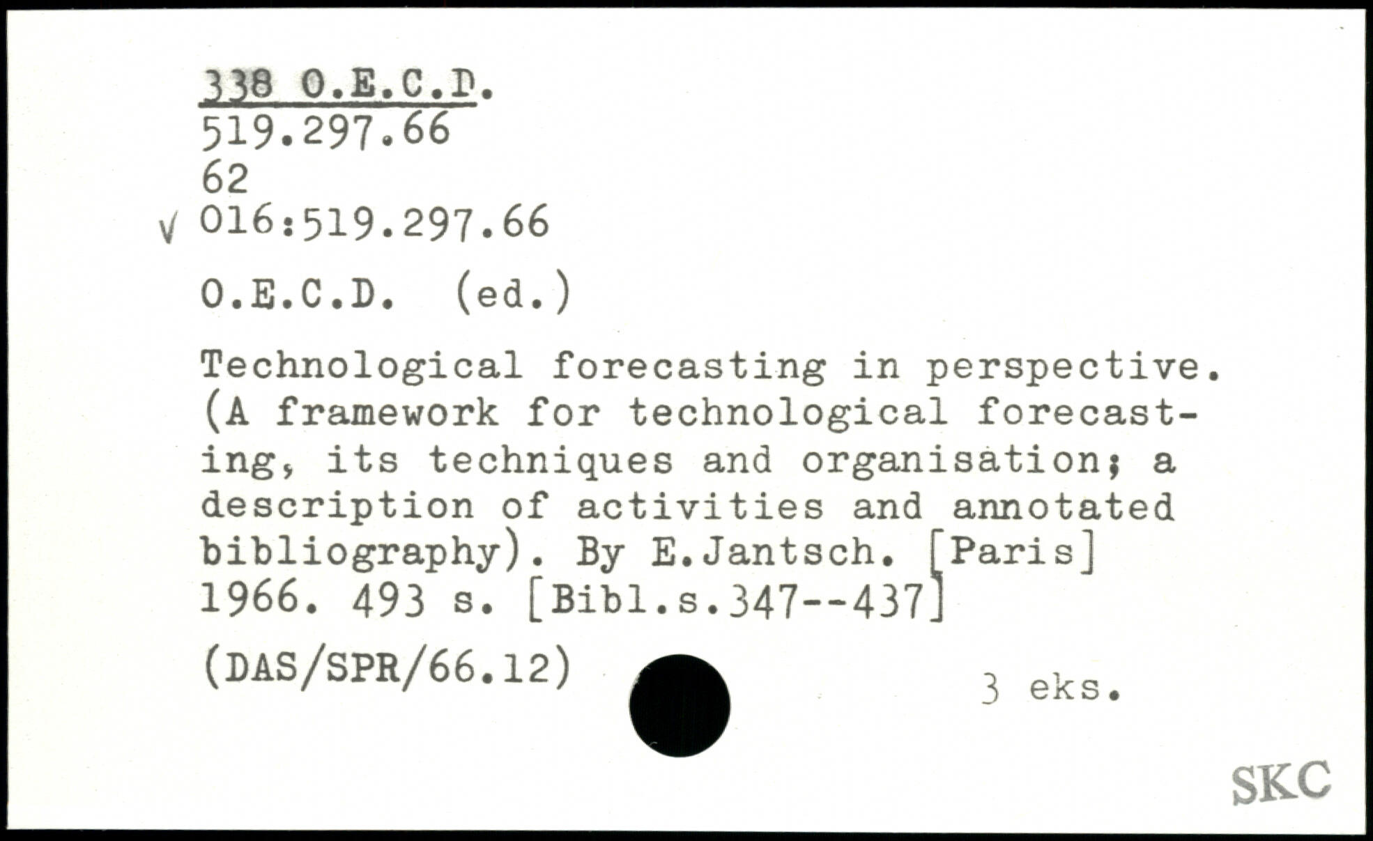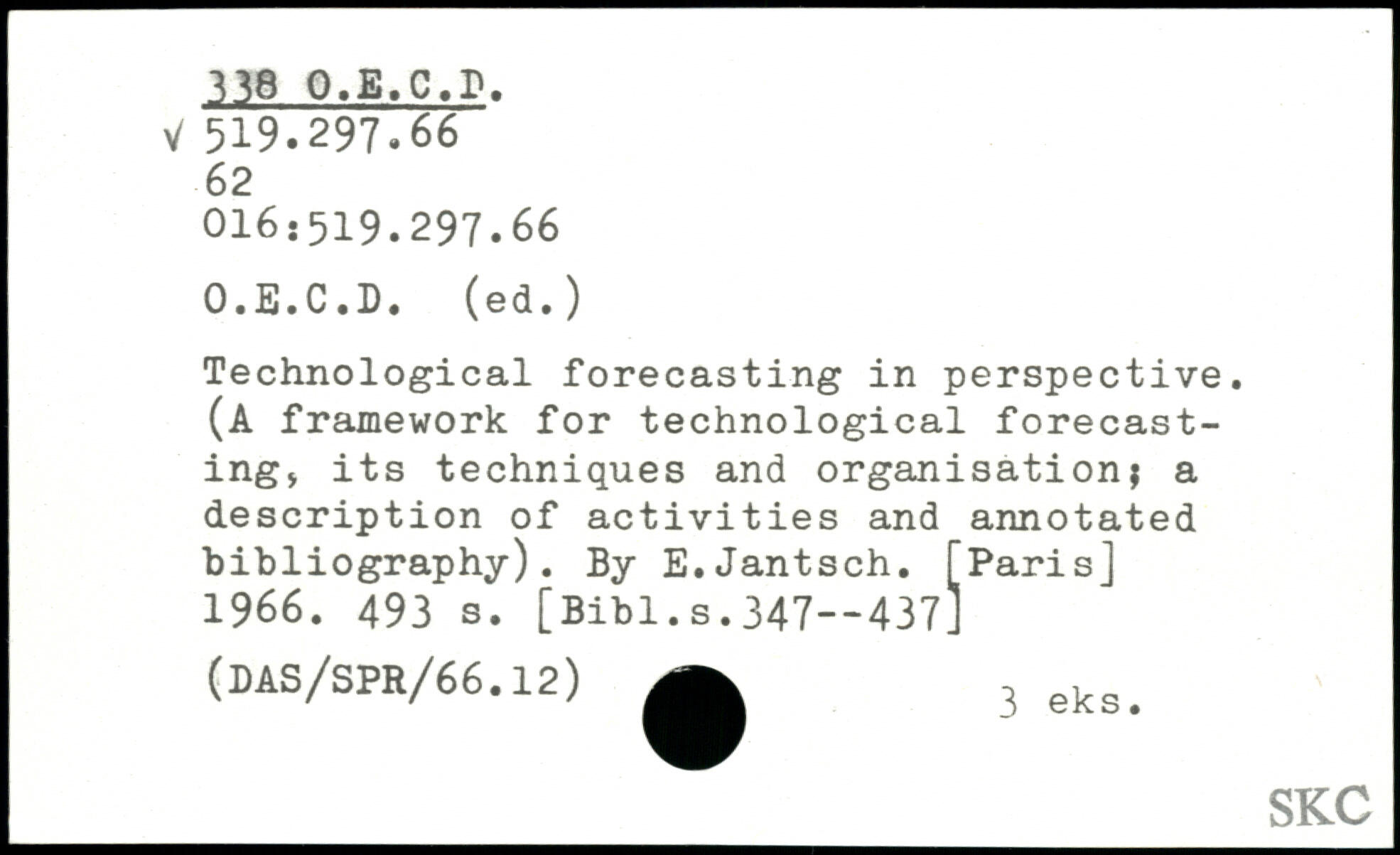 Technological forecasting in perspective. (A framework for technological forecasting. its techniques and organisation; a description of activities and annotated bibliography). By E.Jantsch. r