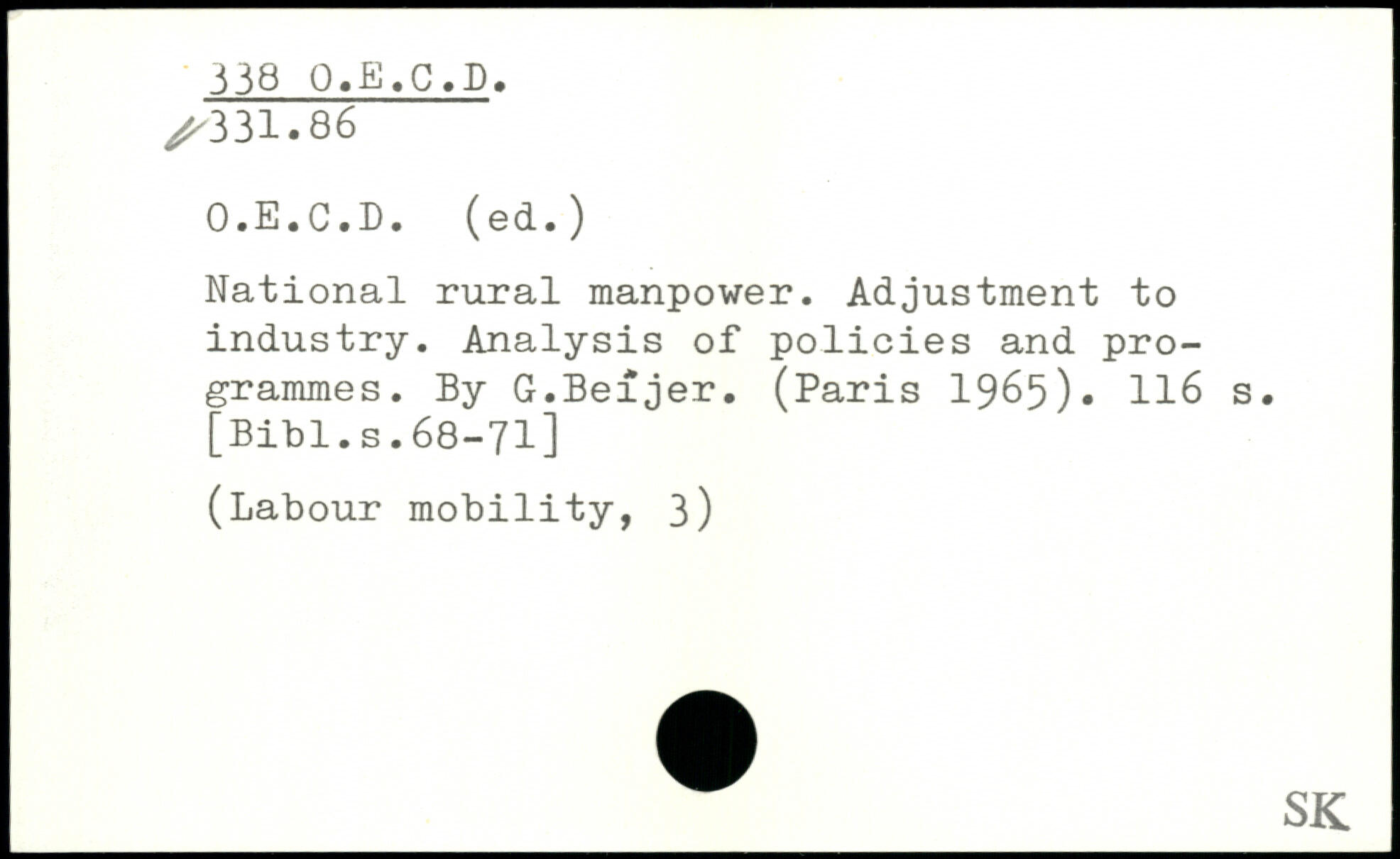National rural manpower. Adjustment to industry. Analysis of policies and programmes. By G.Beijer. (