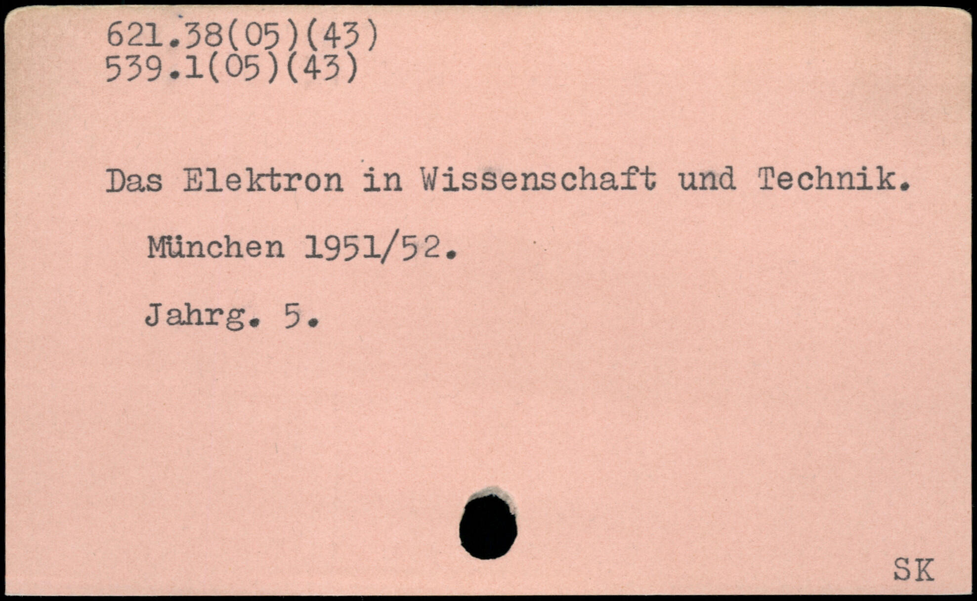 Das Elektron in Wissenschaft und Technik. MUnchen 1951/52. Jahrg. 5.
