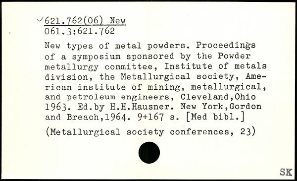New types of metal powders. Proceedings of a symposium sponsored by the Powder metallurgy committee, Institute of metals division, the Metallurgical society, American institute of mining, metallurgical, and petroleum engineers