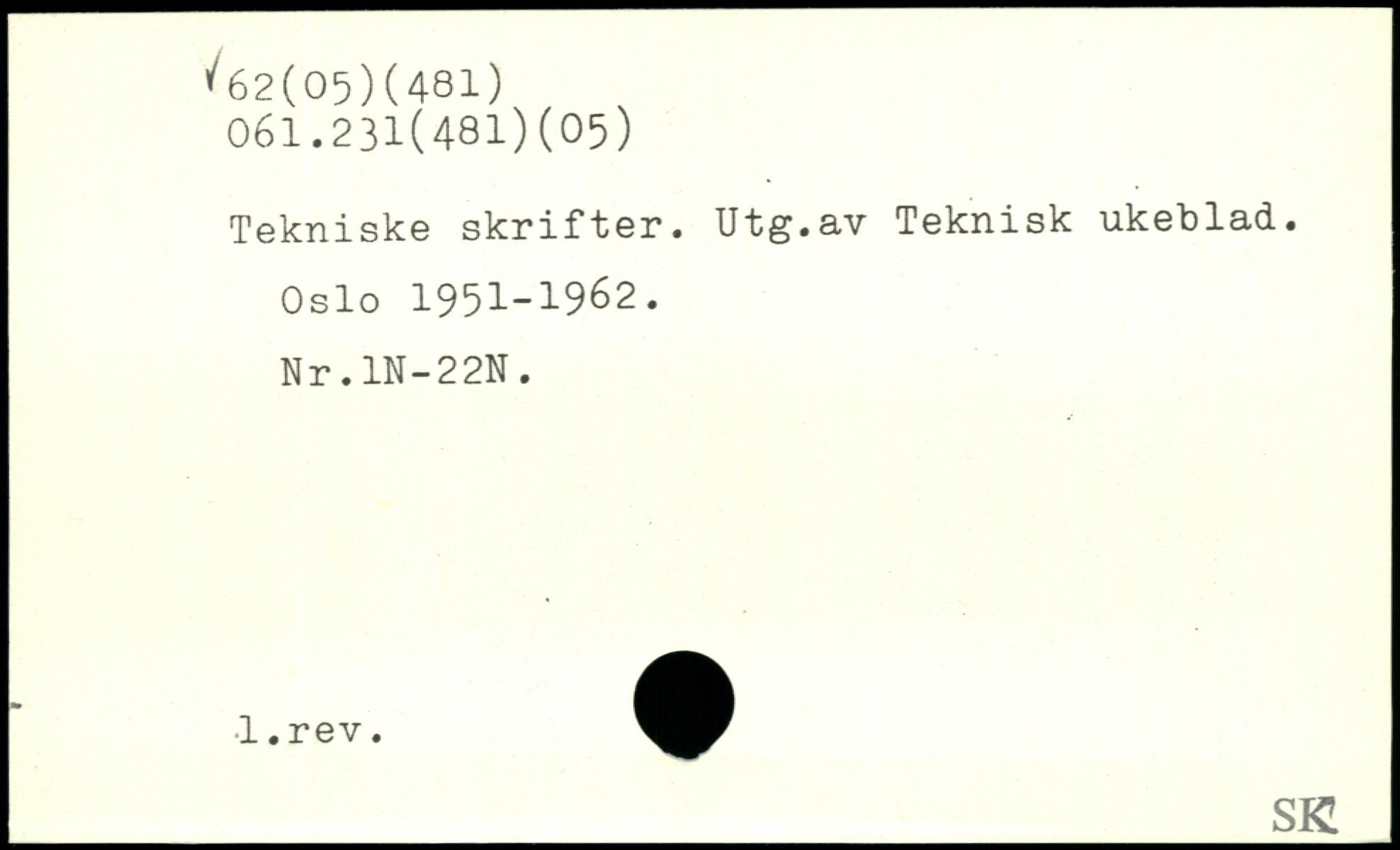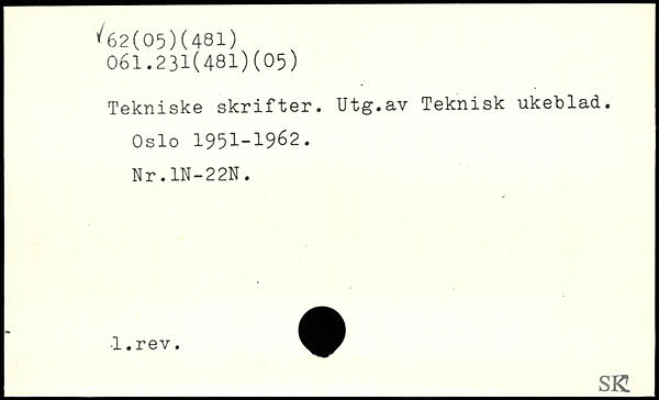 Tekniske skrifter. Utg.av Teknisk ukeblad. Oslo 1951-1962. Nr.1N-22N.