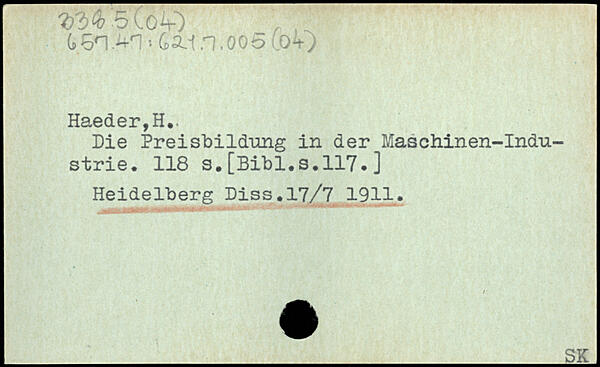 GönGa.’.'i.oco Ot, Haeder,H.. Die Preisbildung in der Maschinen-Industrie.
