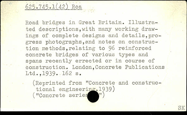Road bridges in Great Britain. Illustrated descriptions,with many working drawings of complete designs and details,progress photographs,and notes on construction methods,relating to 96 reinforced concrete bridges of various types and spans recently errected or in course of construction.